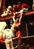 Kids and a tree at Hummingbird, May 7-9, 1976