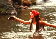 Bob Baker with Shenda and a few friends in Ghost Ranch pool,