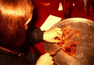 Derek Roff dividing the pie at Pizza Hut, December 29, 1974