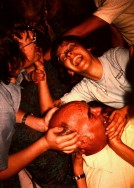 Keith Myers and Sped write "Happy New Year" on Bob's head: