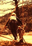 Mrs. (Wanda) Higgins on the monkey bridge at Hummingbird,