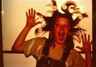 Janine Baker in a cage at Ghost Ranch Museum, June 13-18, 1976